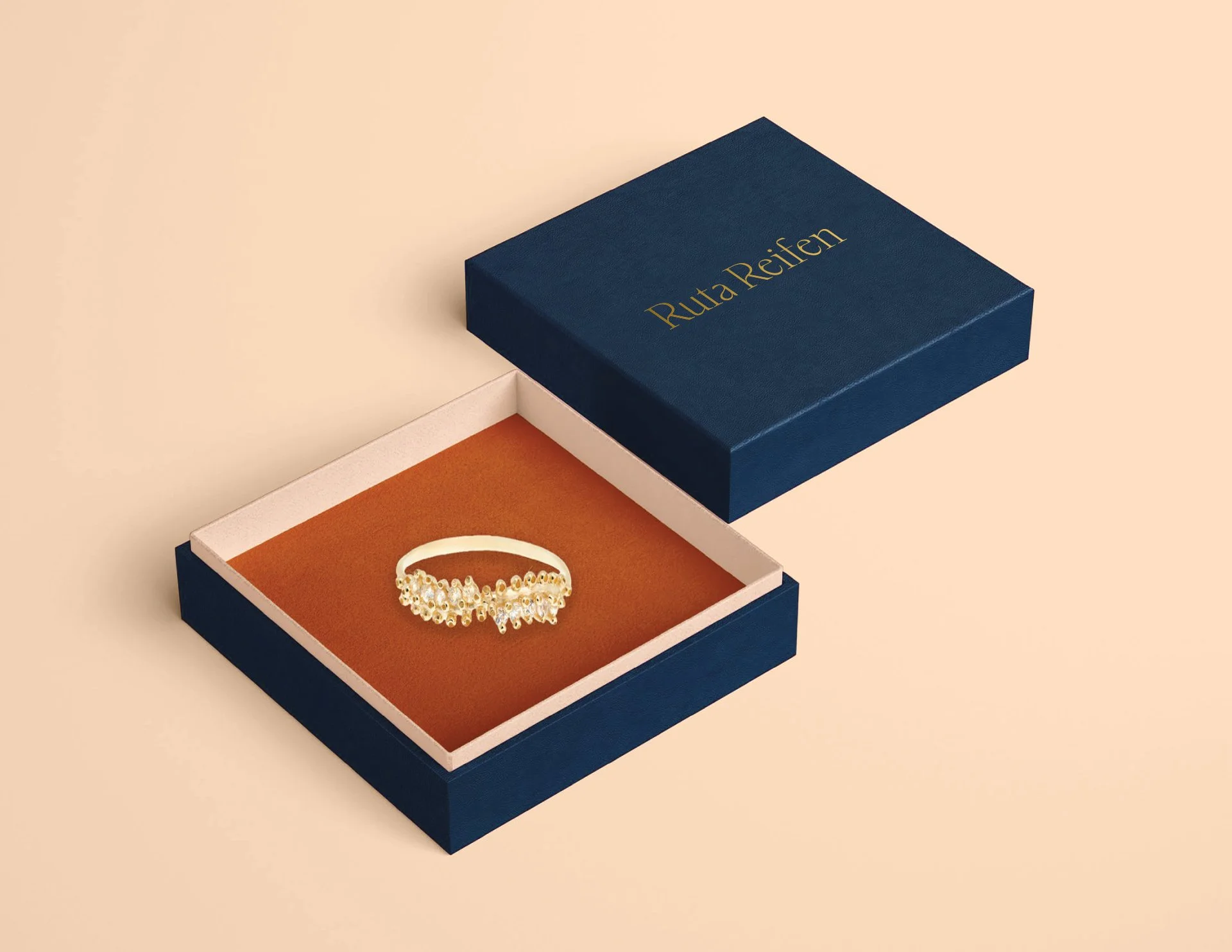For the primary logo’s typography, we used a timeless font and customized a few of the letters to have smooth, unexpected curves. This subtle change makes the logo feel soft and comfortable – conveying the way that Ruta’s jewelry feels when worn.